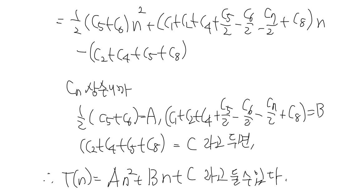 - pseudocode에서 line 한 줄의 cost를 cn이라고 둔다. (첫번째 라인은 c1, 두번째 라인은 c2)