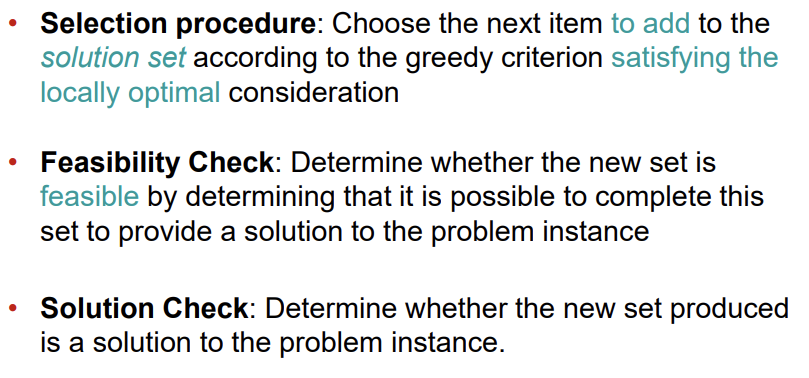 - Selection procedure: solution set에 넣을 next item 선택한다. (the locally optimal consideration을 만족함)