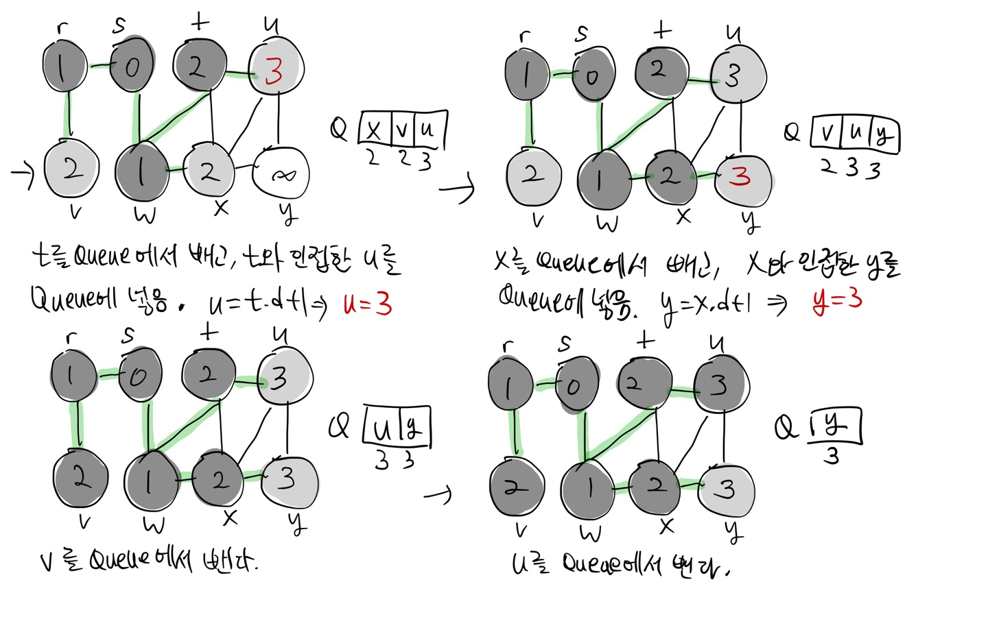 colors를 사용한다. --> 알고리즘의 상태를 추적하기 위해서 (u.color)