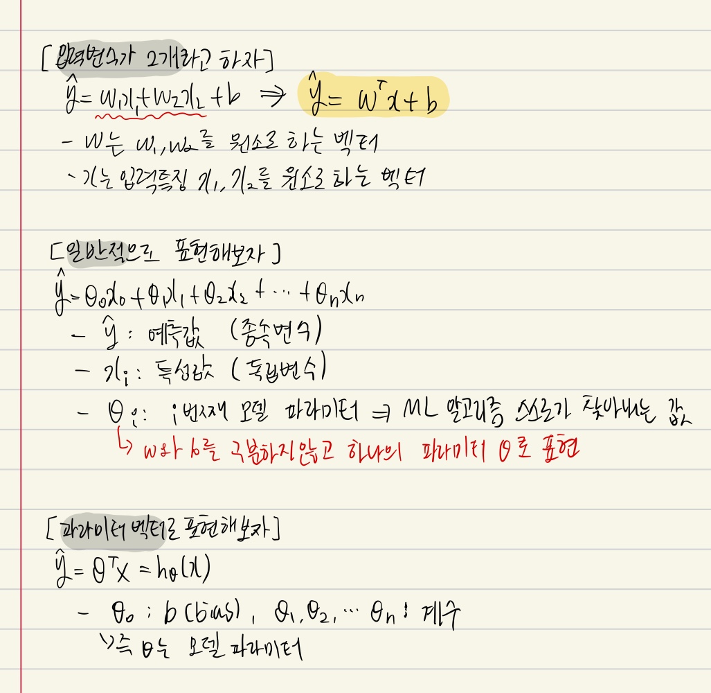 파라미터 벡터로 표현했을 때의 예측값 (y_hat)을 잘 봐두자.