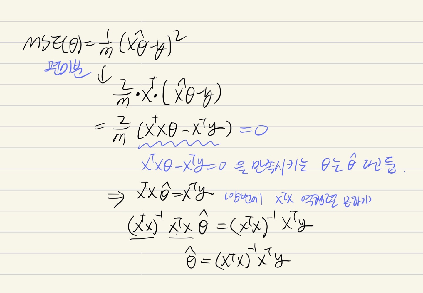 이렇게 정규방정식을 유도해보았다.