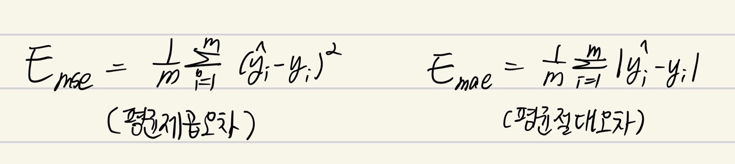 (평균 제곱오차, 평균 절대오차 등등 있음)