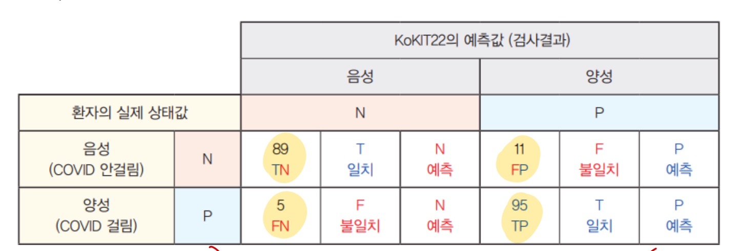 FP : 예측 결과 양성, 실제 결과 음성 (틀림)