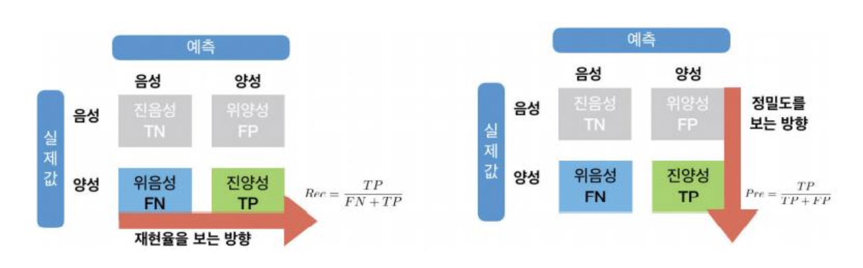 정밀도(pre) = TP / (TP + FP) = 양성환자 제대로 예측 / 양성이라고 예측