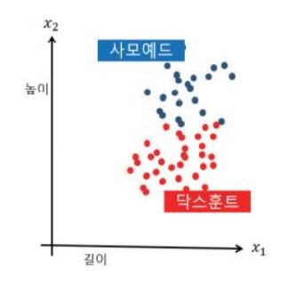 닥스훈트와 사모예드를 분류한다고 해본다면, feature로는 몸통의 길이와 높이로 둘 수 있다.