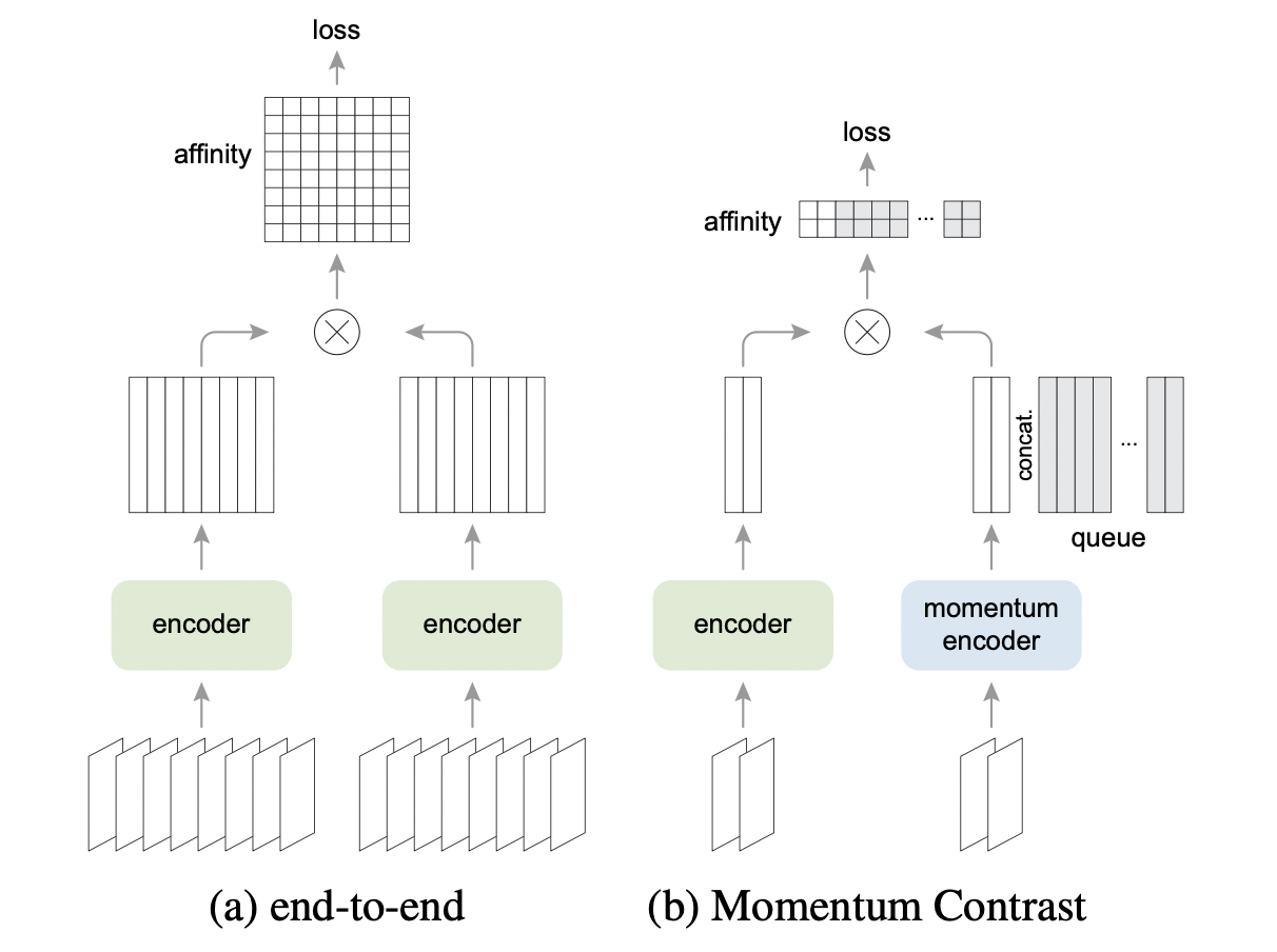 negative key들은 같은 batch로부터 나오고, end-to-end back propagation으로 업데이트된다.