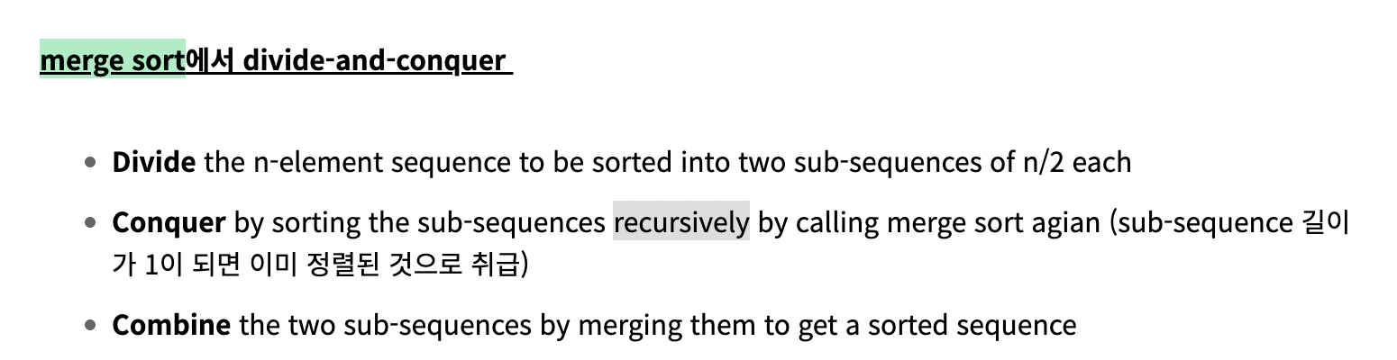conquer: cub-problem을 recuresively 하게 해결한다.