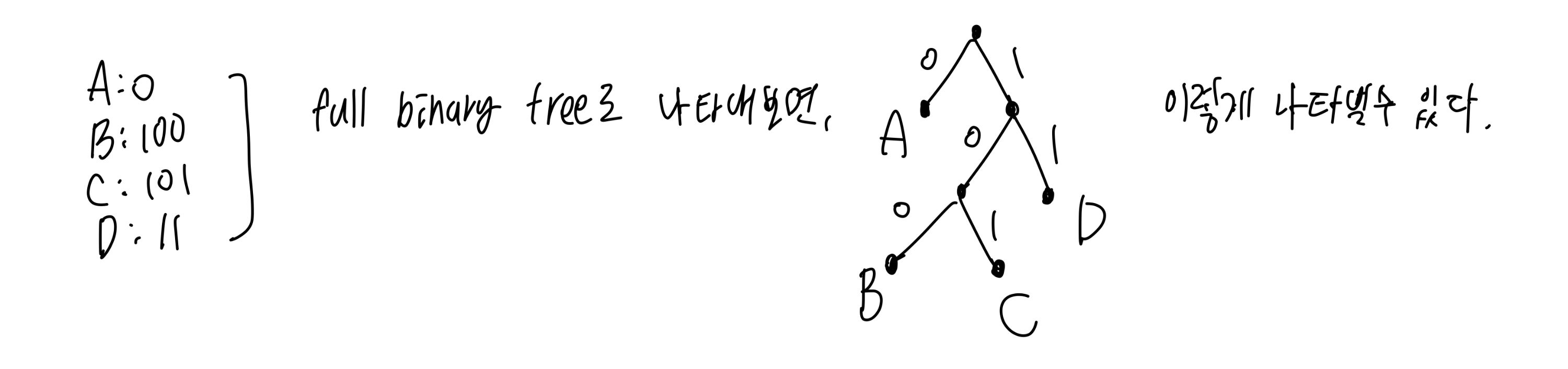 - 이를 표현할 때 prefix-free encoding을 사용한다.