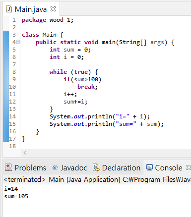 두 번째 if 문 안의 break java는 java라는 while문을 벗어나게 하기 때문에 프로그램이 종료된다. 하지만 위의 코드로는 i가 4까지 올라가는 일이 없어서 프로그램은 계속 반복해서 돌아가게 된다.