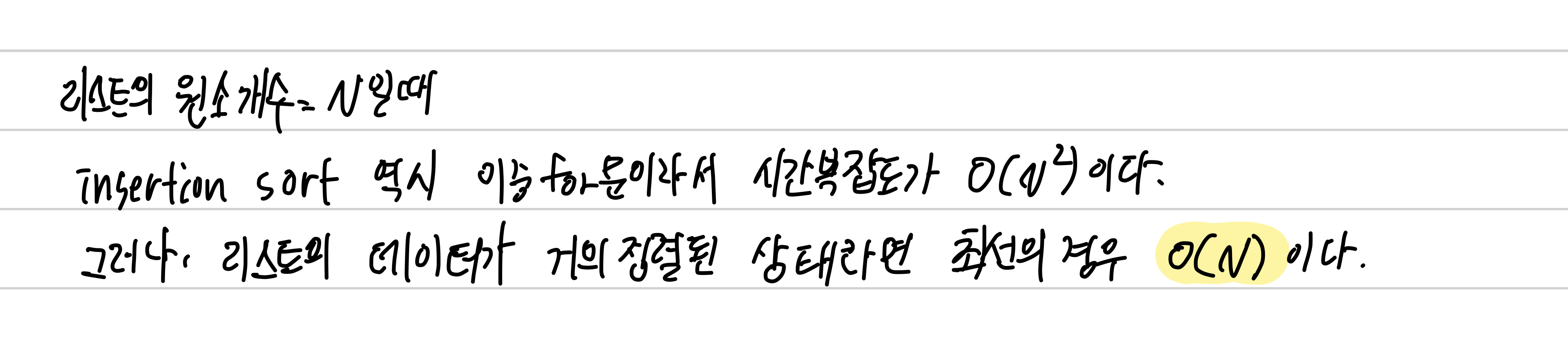 (insertion sort가 데이터가 정렬되어있을 때 빠르다는 것과는 반대인 것이다.)