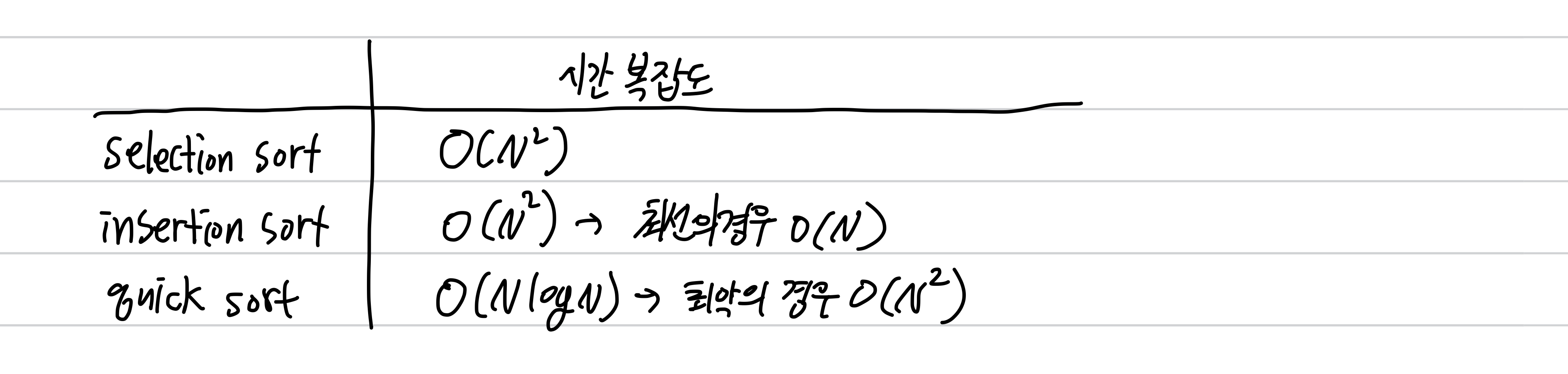 선택정렬, 삽입정렬, 퀵정렬의 시간 복잡도 비교