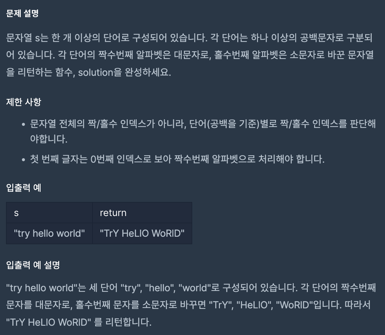 | [Programmers] LV.1 이상한 문자 만들기 (python) (0) | 2023.04.19 |