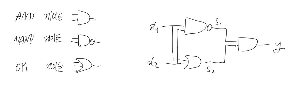 AND, NAND, OR 게이트를 조합하여 XOR 게이트를 만들 수 있다.