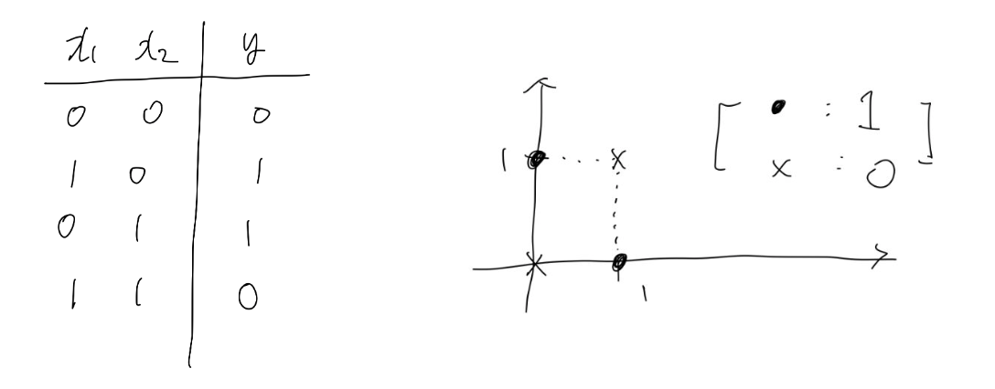 -> XOR 게이트의 입력과 출력을 좌표평면에 표현해보면, 어떠한 직선으로 영역으로 나눌 수 없다는 것을 알 수 있다.