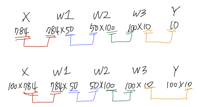 아래의 X의 행수 100은 100개의 이미지를 넣었다는 것을 의미하며, 이는 학습할 때 batch size 를 의미한다.