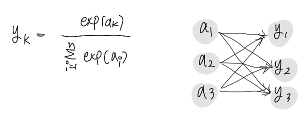 - softmax의 출력은 모든 입력신호의 영향을 받는다.