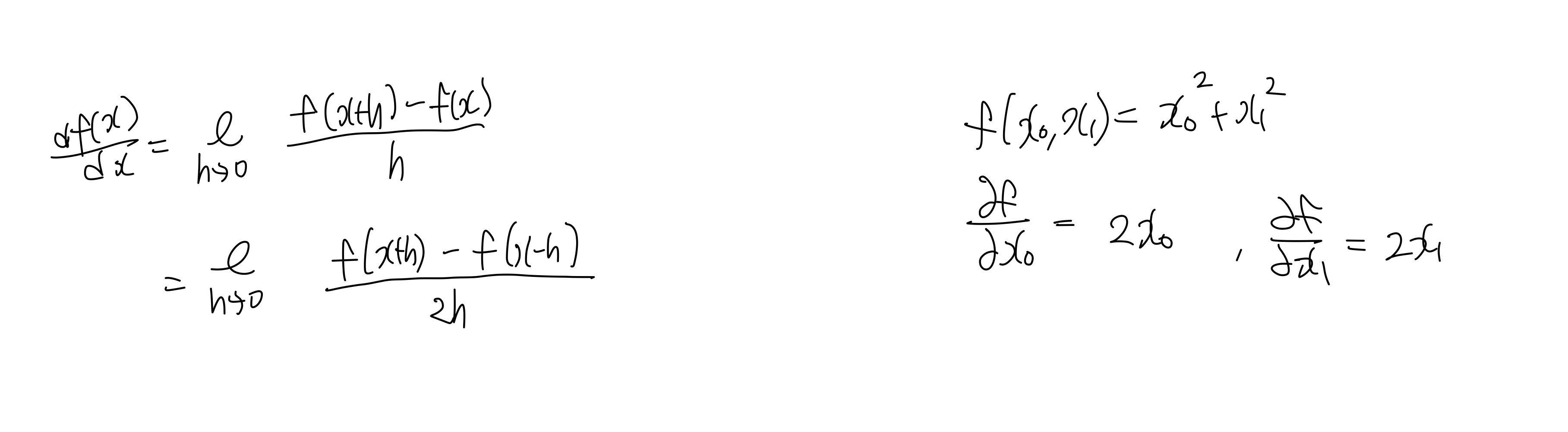 - 편미분: 변수가 여러 개인 함수에 대한 미분 -> 다른 변수는 상수로 취급하여 미분한다.