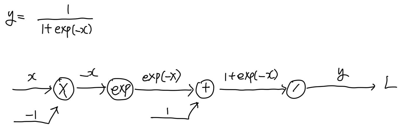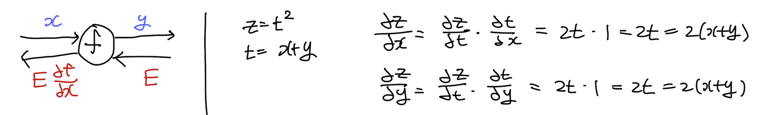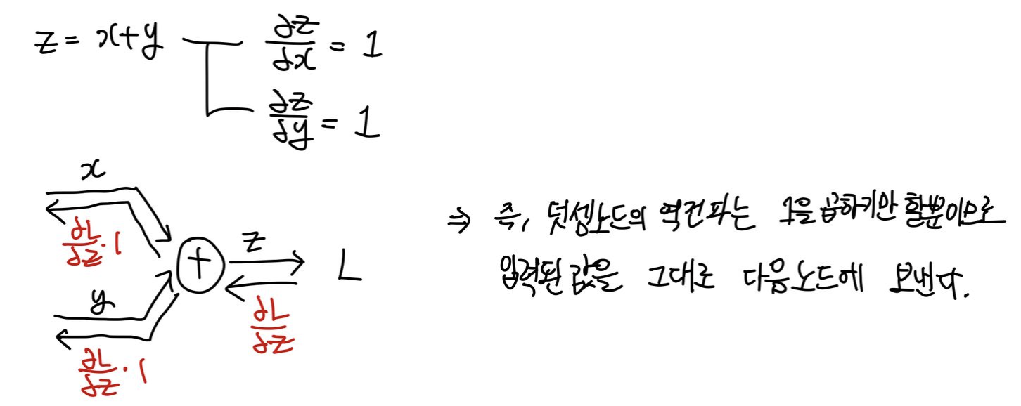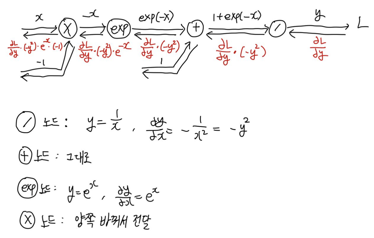 앞서 순전파로 나타냈던 계산그래프를 역전파를 포함하여 나타내면 아래와 같다.