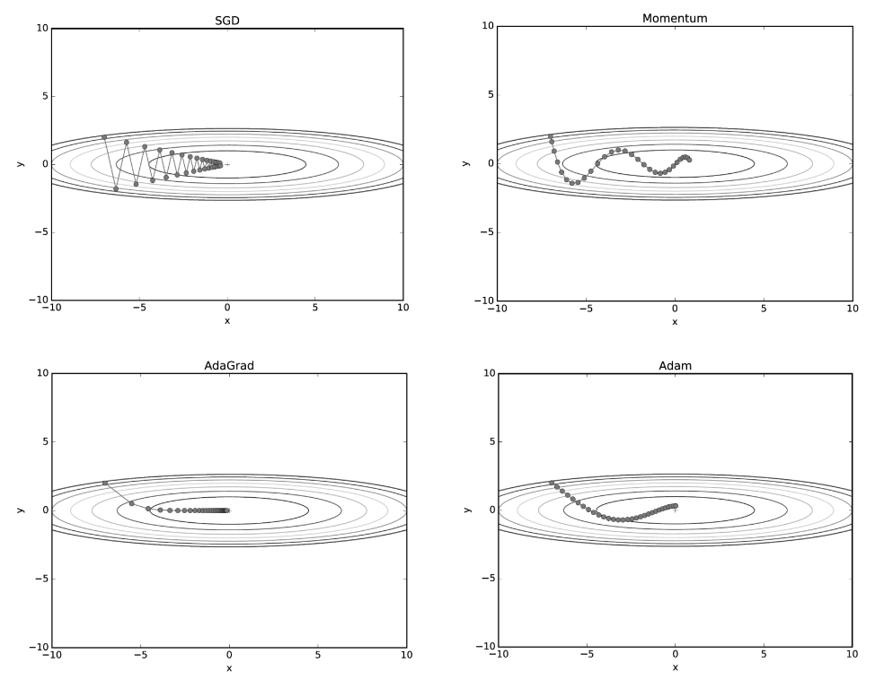 ㄴSGD 는 방향에 따라 기울기가 달라지는 함수에서는 탐색경로가 비효율적이다.