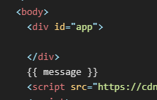 그런데 {{message}}가 <div if = 'app'> 태그 밖에 있을 경우에는 제대로 출력되지 않는다.