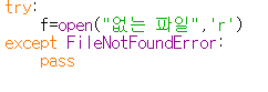 오류를 그냥 통과 시키고 싶을 때에는 except 문에 pass 를 써주면 된다.