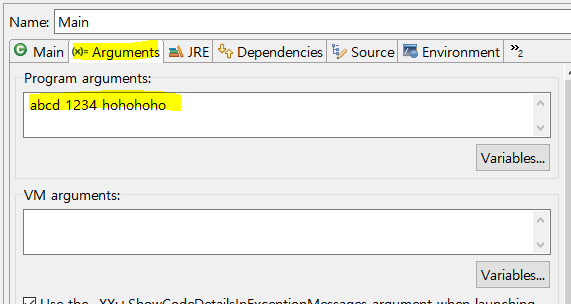Program arguments에 원하는 내용을 입력하면 된다.