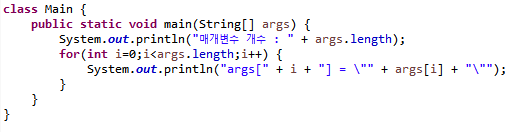 커맨드라인을 통해 입력된 문자열은 String 배열에 담겨서 해당 클래스의 main메서드의 매개변수(args)에 전달된다.