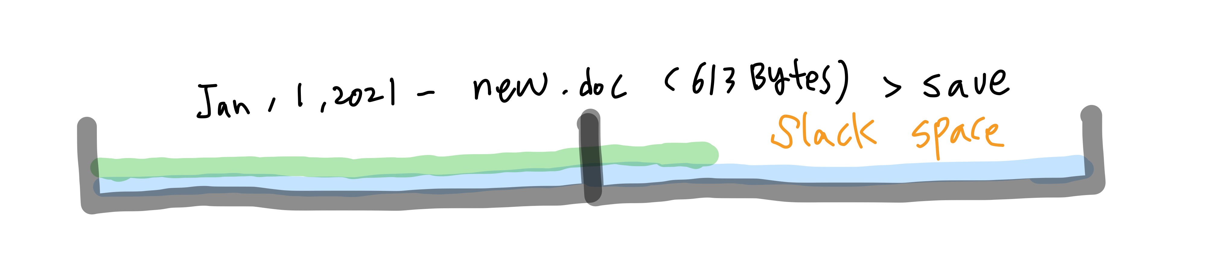 그러면 new.doc로 덮여지지 않은 1024-613=411 byte가 slack space, 즉 슬랙 공간이 된다.