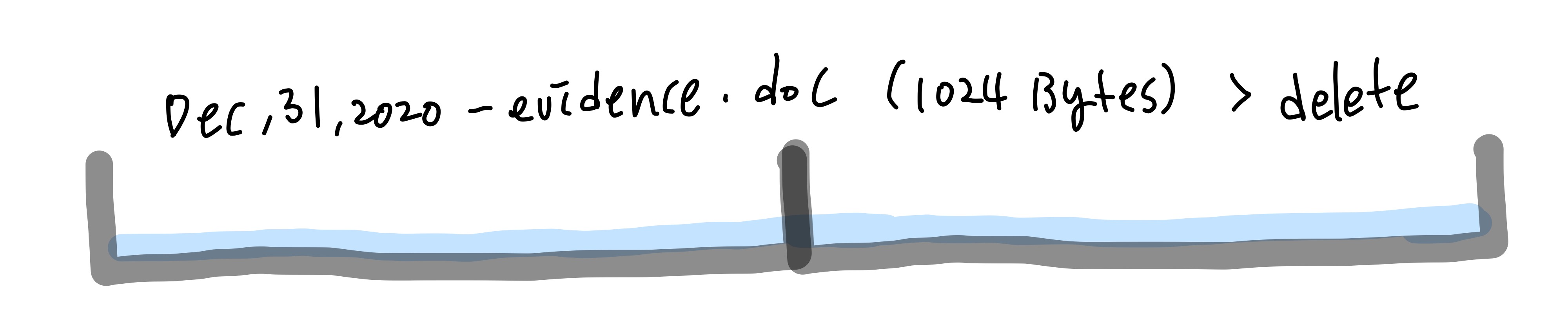 그리고 evidence.doc 를 삭제하면 삭제될 것이라고 생각하겠지만, 여전히 evidence.doc는 두개의 섹터를 차지하고 있다.